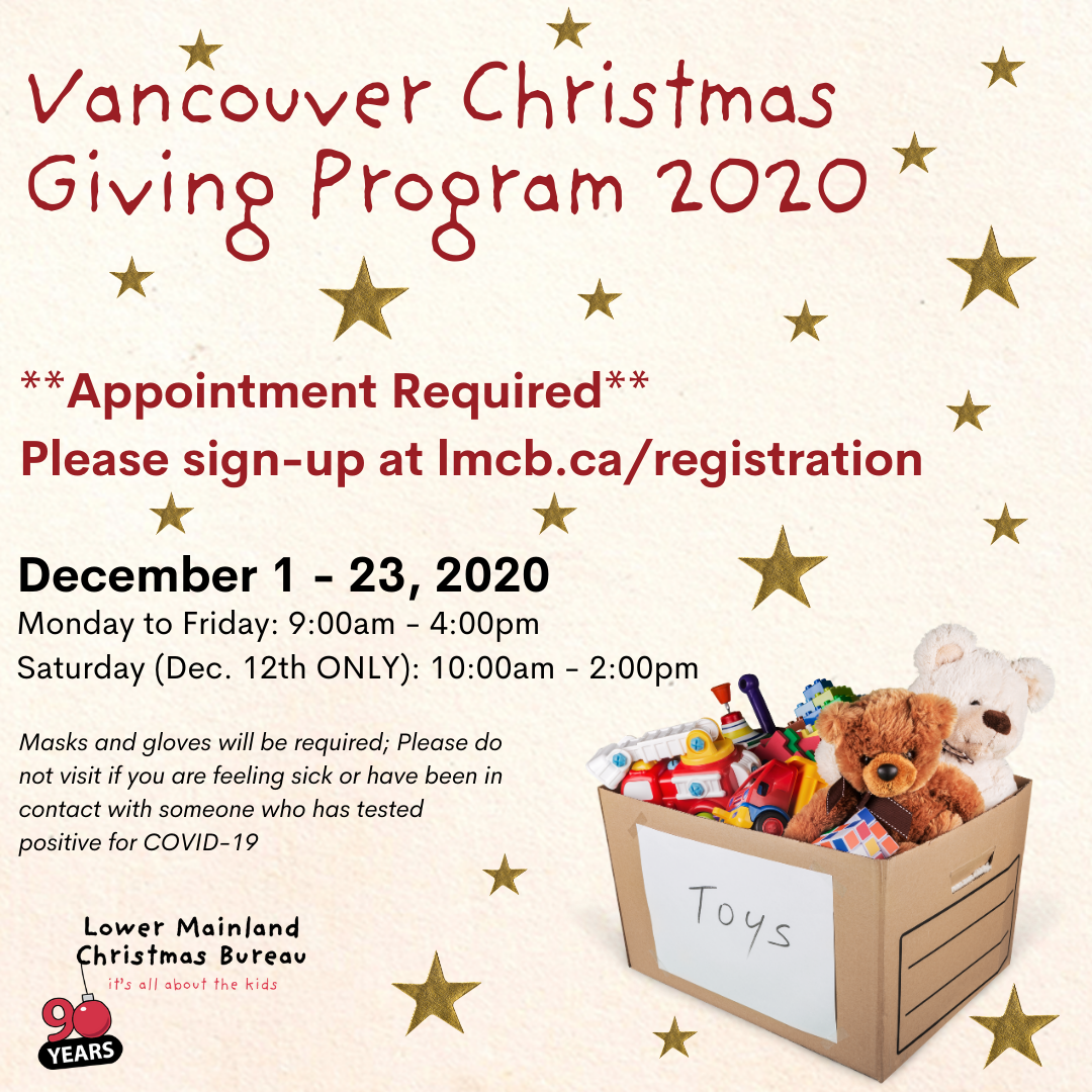 Since 1930, our number one goal at the Lower Mainland Christmas Bureau has been to ensure that every child in our communities have a smile on their face during the holiday season. The holidays are about family and friends, and the experience of sharing and giving. It should be a happy time for everyone, especially for children.